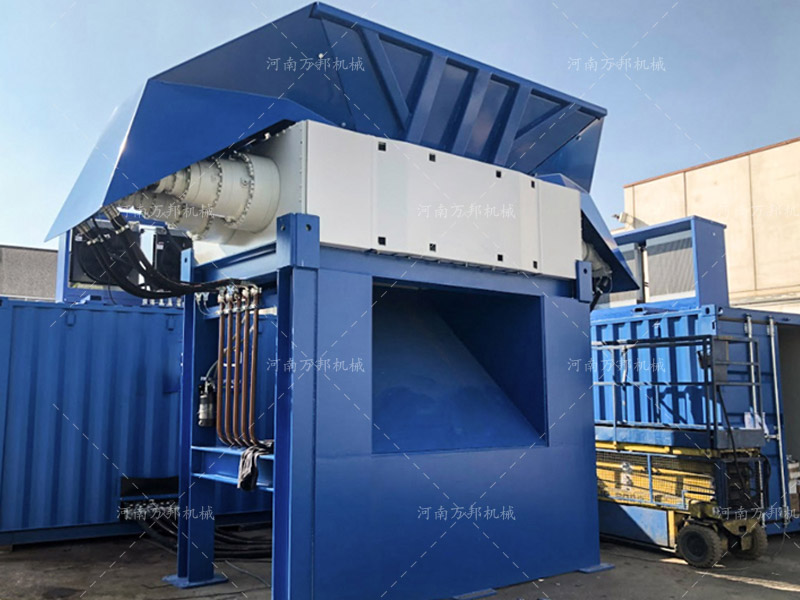 河南萬(wàn)邦機(jī)械液壓金屬撕碎機(jī)又叫做雙軸破碎機(jī),雙軸金屬破碎機(jī),該機(jī)為河南萬(wàn)邦機(jī)械依據(jù)市場(chǎng)需求而研究開(kāi)發(fā)的一種新型剪切式破碎機(jī),該機(jī)主要作為金屬粗碎設(shè)備用于對(duì)報(bào)廢汽車(chē)外殼、彩鋼瓦、油漆桶等大型廢舊空體物料進(jìn)行破碎加工,所加工物料根據(jù)厚度及材質(zhì)種類(lèi)不同呈顆粒狀或片狀結(jié)構(gòu),該機(jī)相對(duì)金屬粉碎機(jī)在具有:噪音低、粉塵少、適用性廣、破碎比大的優(yōu)勢(shì)。在設(shè)備適用性上來(lái)說(shuō)金屬撕碎機(jī)主要作為金屬粉碎機(jī)前道粗碎設(shè)備用于對(duì)金屬粉碎機(jī)無(wú)法破碎的大型金屬進(jìn)行預(yù)處理已達(dá)到細(xì)碎加工設(shè)備處理要求。在設(shè)備構(gòu)成上金屬撕碎機(jī)主要由撕碎刀片組、承載箱體、箱體支架、進(jìn)料系統(tǒng)、動(dòng)力系統(tǒng),電器控制系統(tǒng)組成,在破碎大型廢舊金屬過(guò)程中該機(jī)獨(dú)有的動(dòng)力保護(hù)機(jī)構(gòu)可有效的防止設(shè)備超載造成的設(shè)備損壞。河南萬(wàn)邦機(jī)械金屬撕碎機(jī)圖片如下: