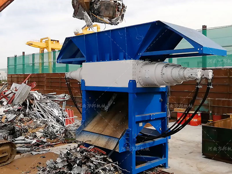 鋼絲繩粉碎機作為目前市場中的一種萬用粉碎設備,在設備名稱上又叫做雙軸剪切式破碎機、雙軸撕碎機,該機是利用剪切式破碎原理實現對廢舊鋼絲繩進行粉碎加工的專業(yè)設備,在設備優(yōu)勢上河南萬邦機械根據柔性鋼絲物料對刀具及設備結構的要求生產的鋼絲繩專業(yè)撕碎機具有扭矩大、剪切斷口平整、不纏繞、效率高的優(yōu)點。在產品應用上該機可用于粉碎各類鐵絲、鋼絲、廢舊線纜、吊裝帶、牽引繩、尼龍吊繩、纜繩、棉繩絲繩、辮子料、絞繩、鋼纜、廢棄光纜等物料,通過該機粉碎后的物料為段狀顆粒,在物料大小問題上河南萬邦機械可根據您的要求為您配置不同刀具。