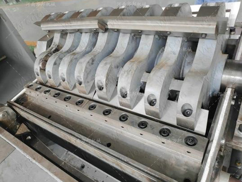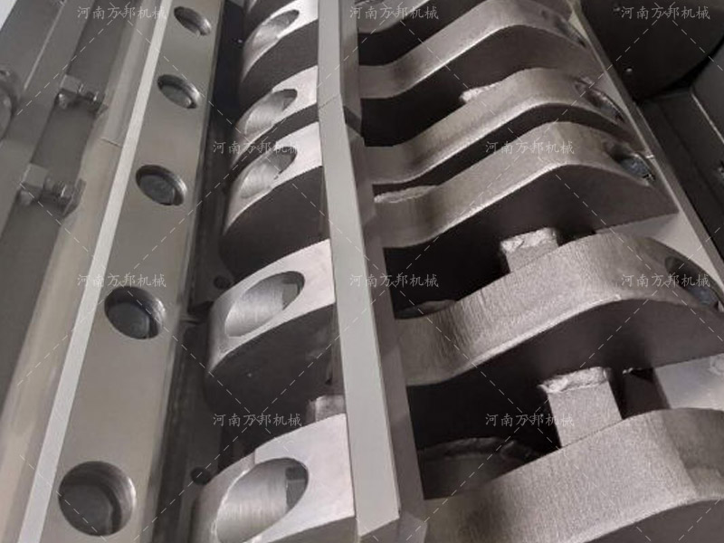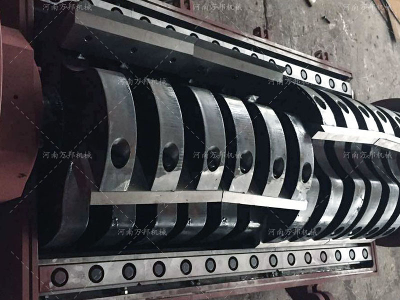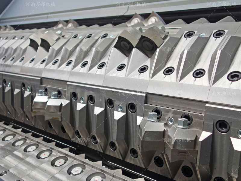 4、刀架優(yōu)化設(shè)計(jì),刀架螺旋分布,可分散碎料時(shí)受力度,減輕碎料時(shí)沖擊力,使得每刀的破碎剪切力更大。